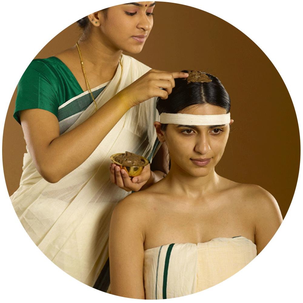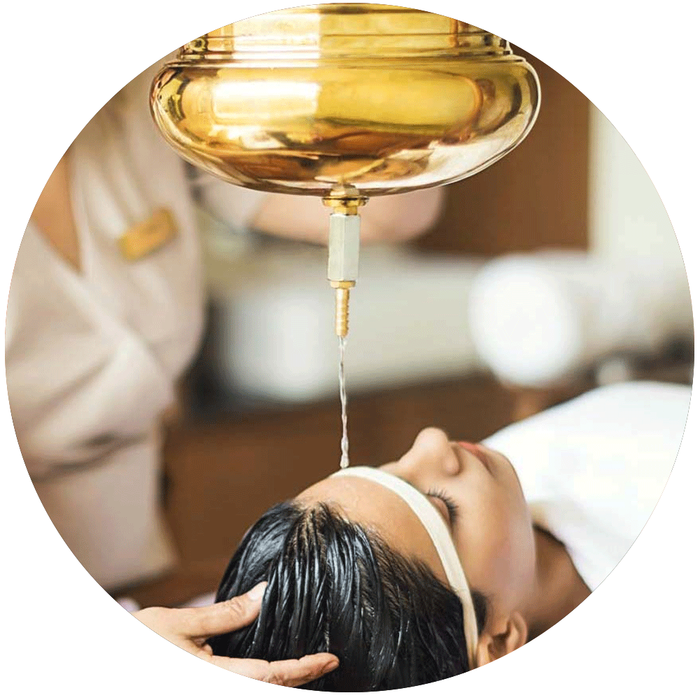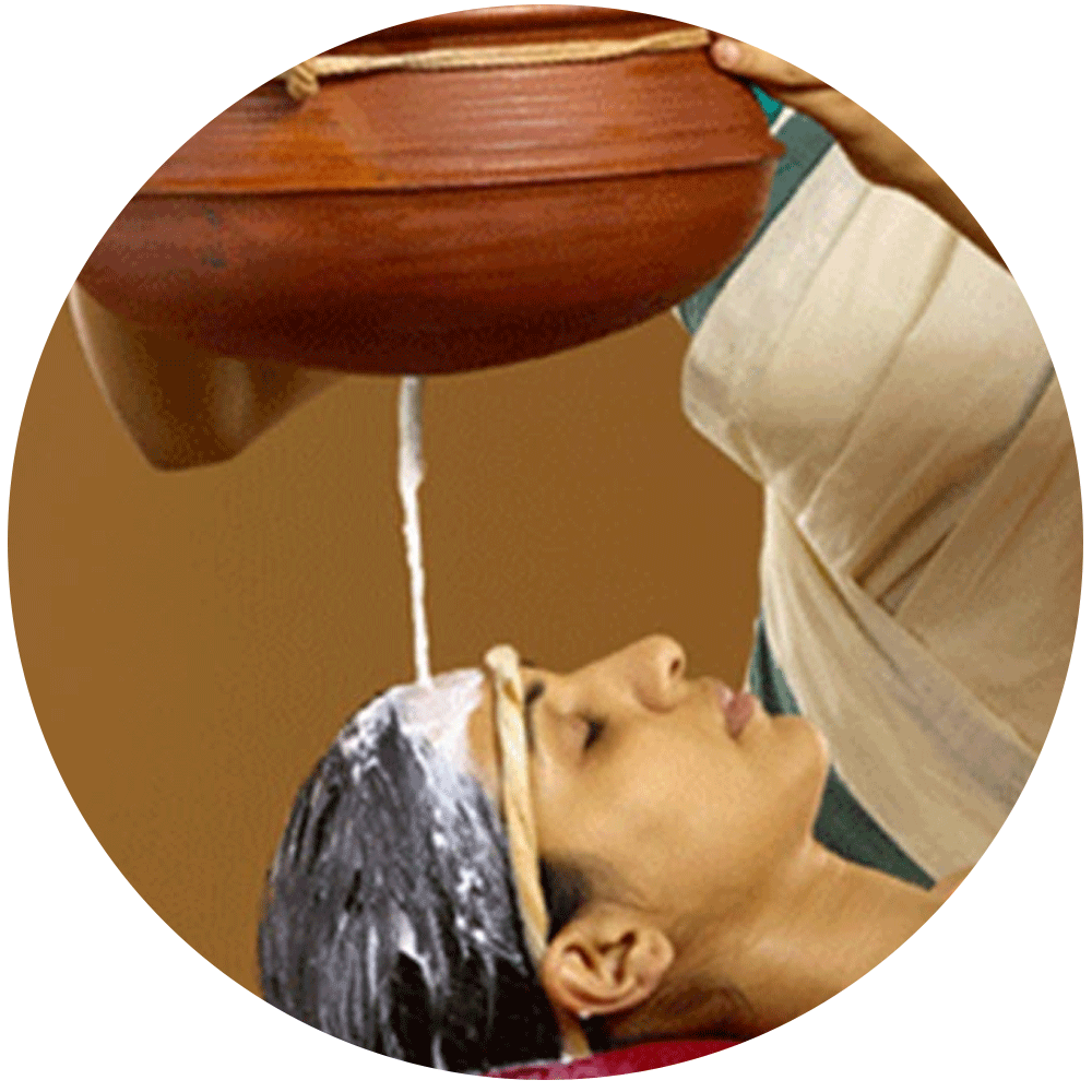 It is an amazingly relaxing therapy which uses a steady stream of warm medicated oils (Tail Dhara) or medicated buttermilk (Takra Dhara) using special devices to flow rhythmically across the forehead. This is usually done after Abhyangam. This therapy provides considerable relief from mental stress & psychosomatic disorders. It soothes your body and mind & induces sound sleep.